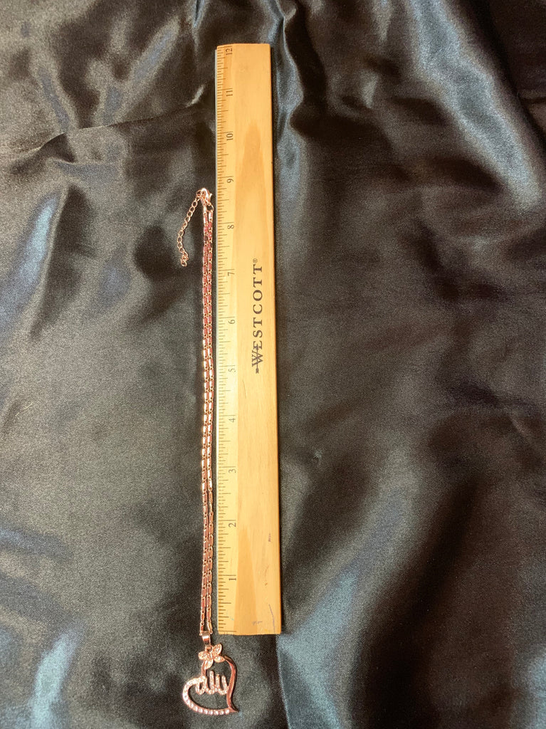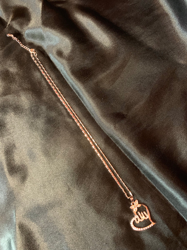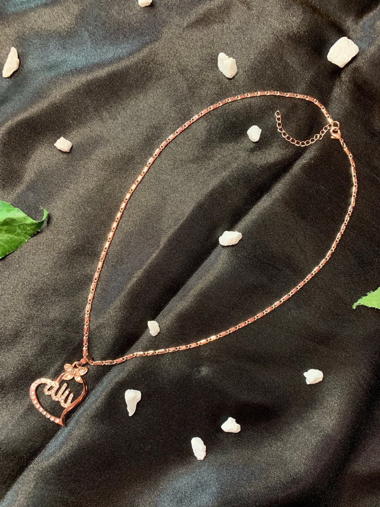 Short Rose Gold necklace with heart shaped pendant and butterfly.