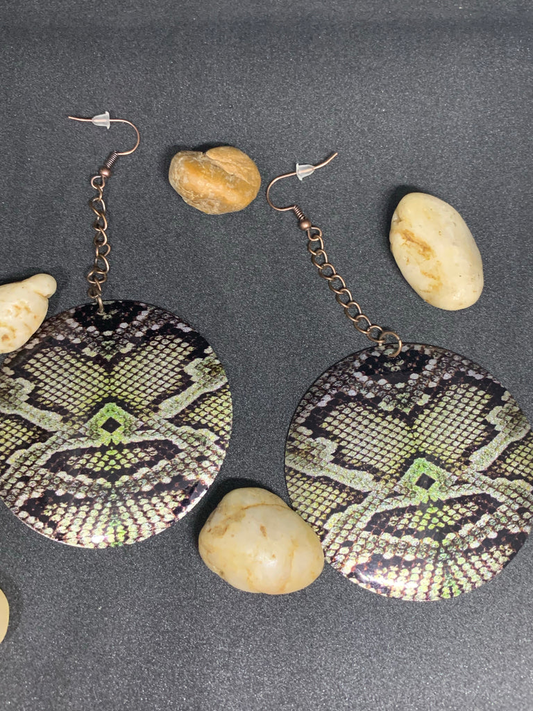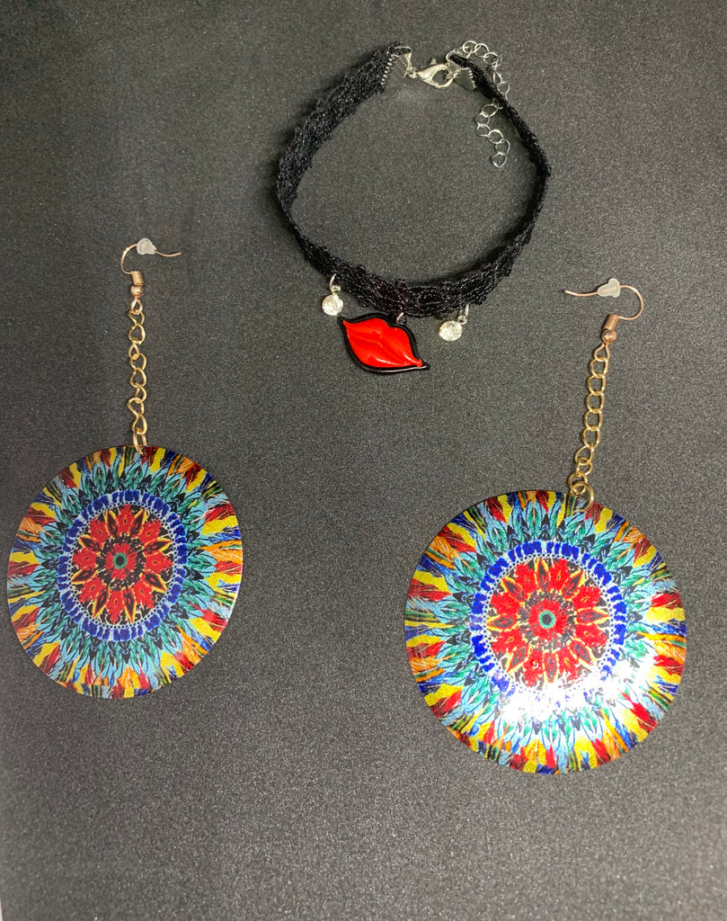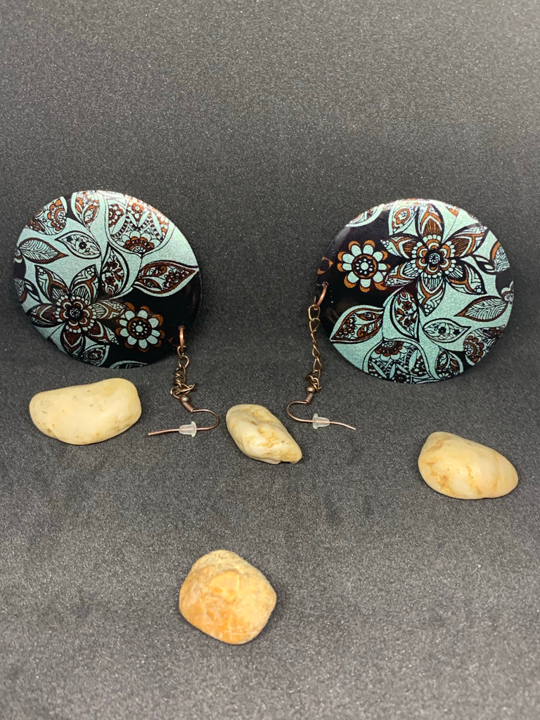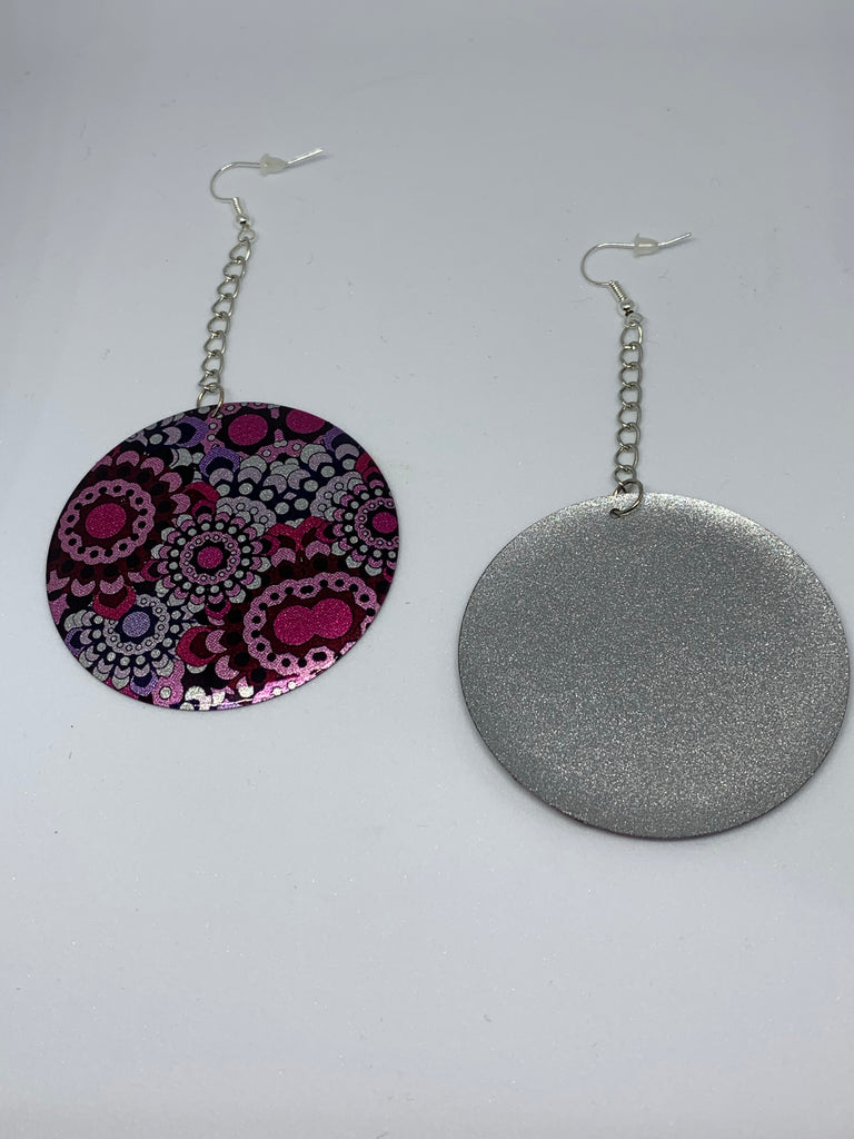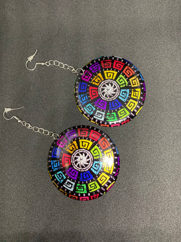 Flat colorful disk shaped fish hook hanging gypsy party earrings, great for a night out with friends, or to wear on special occasions. (Fish hook is Led and nickel free)